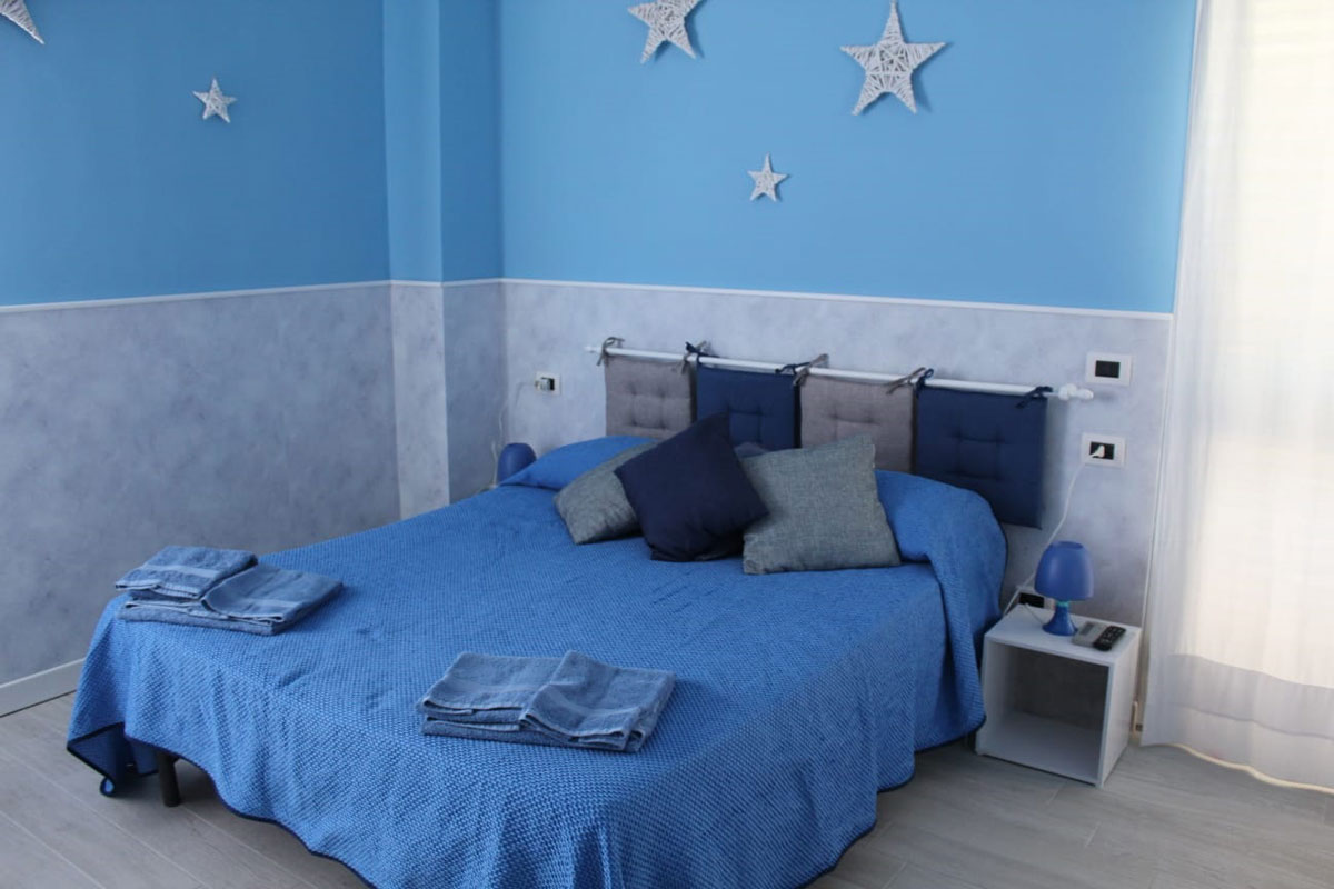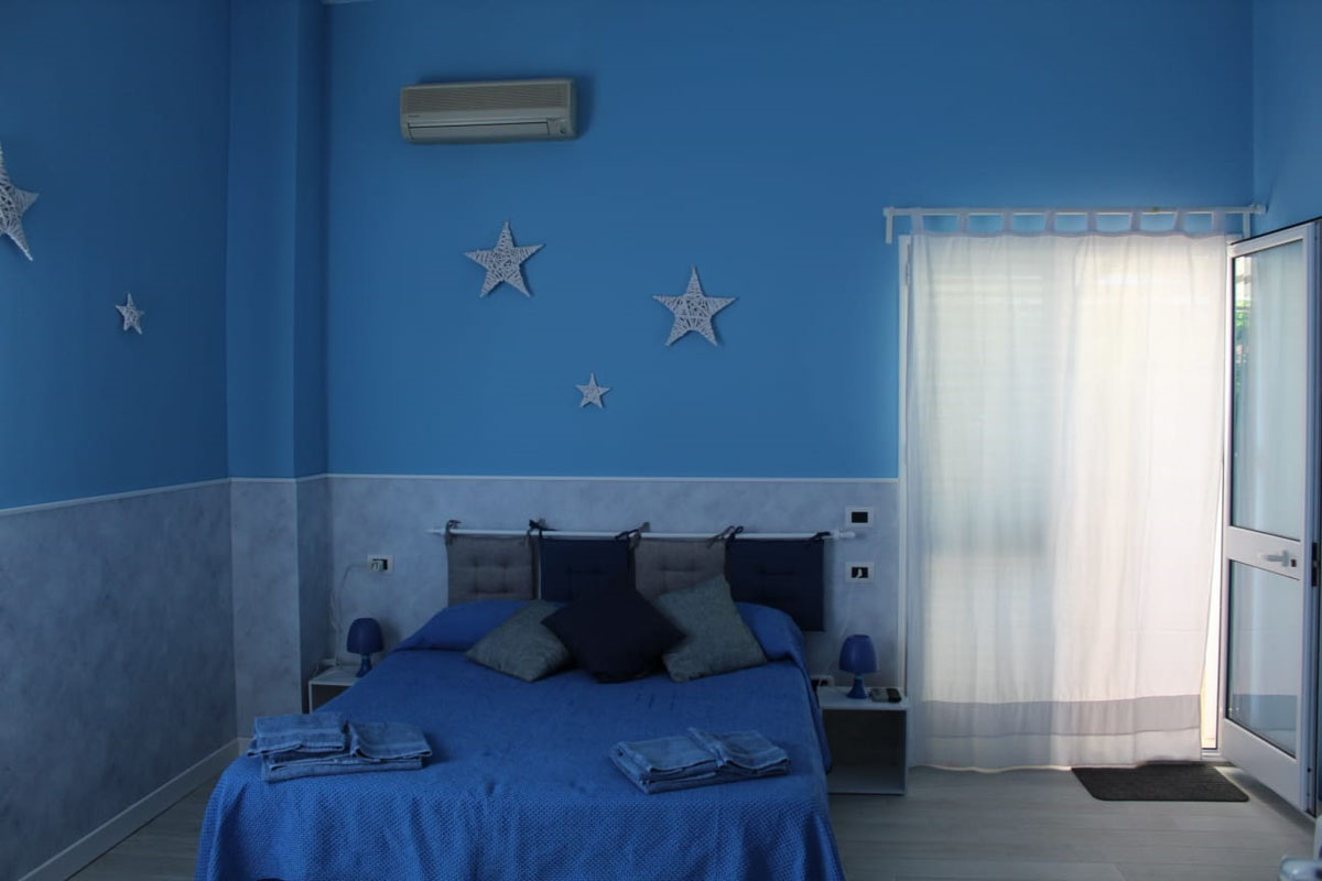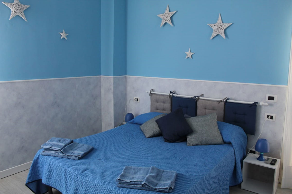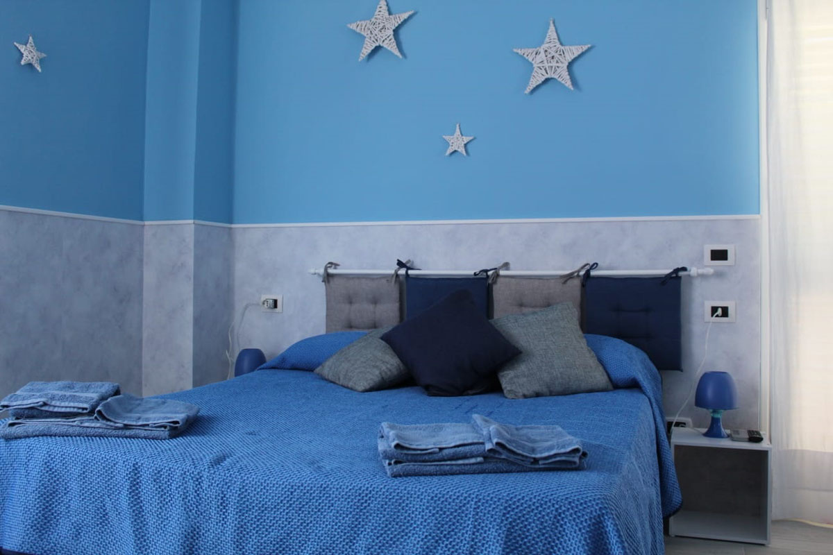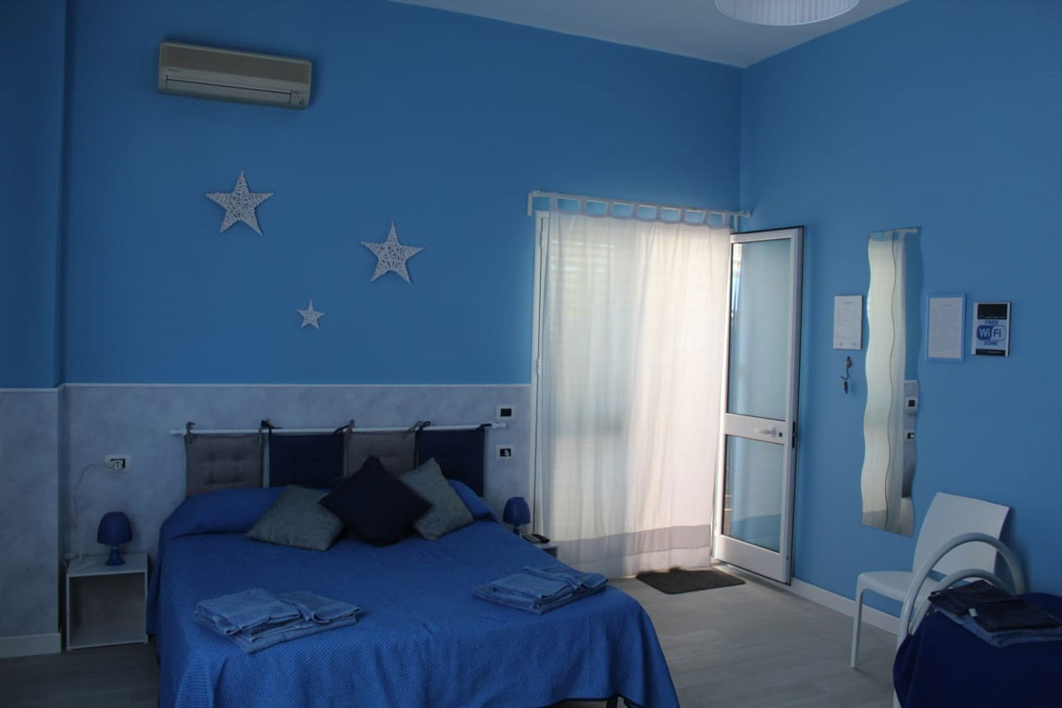 Unica, raffinata, design moderno e affascinate, arredata con gusto; la camera CIELO è perfetta per le famiglie che desiderano trascorrere una vacanza tranquilla, lontani dal caos cittadino e a pochi passi dalla spiaggia!