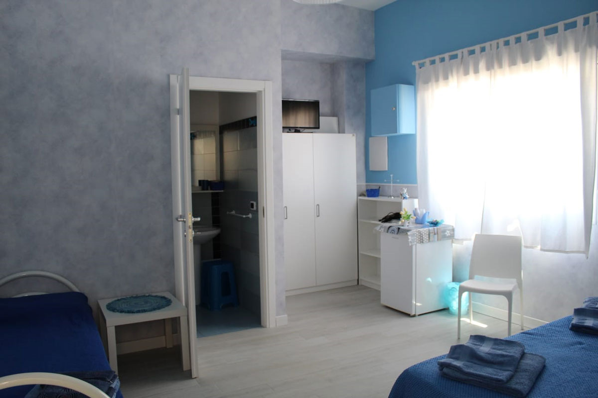 Anche la stanza CIELO ha bagno autonomo, tv, climatizzatore caldo/freddo autonomo, frigobar con zona freezer, cassetta di sicurezza, connessione WiFi.